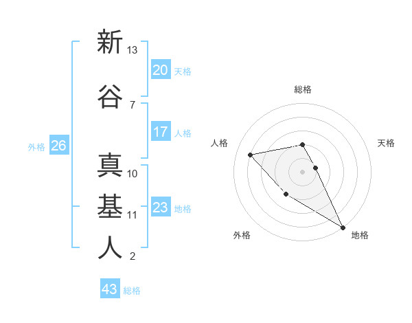 新谷 真基人さんを姓名の画数から五運を鑑定