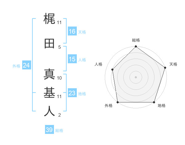梶田 真基人さんの総格は39画の5点!