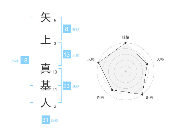 矢上 真基人さんの総格は31画の5点!