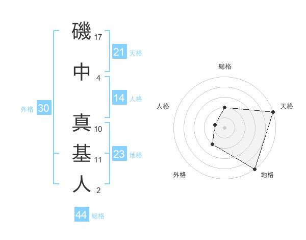磯中 真基人さんの地格は23画の5点!