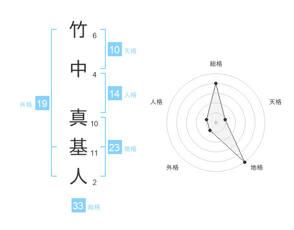 竹中 真基人さんの総格は33画の4点!