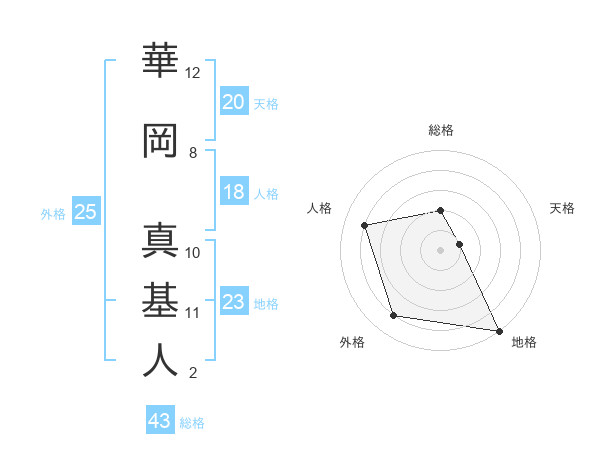 華岡 真基人さんの総格は43画の2点!