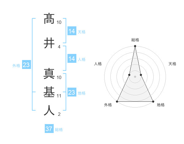 髙井 真基人さんを姓名の画数から五運を鑑定
