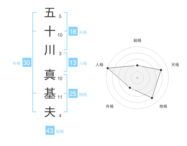 五十川 真基夫さんを姓名の画数から五運を鑑定