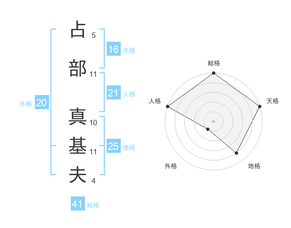 占部 真基夫さんを姓名の画数から五運を鑑定