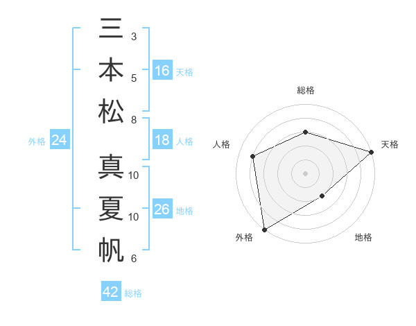 三本松 真夏帆さんを姓名の画数から五運を鑑定