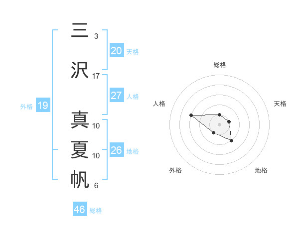 三沢 真夏帆さんを姓名の画数から五運を鑑定