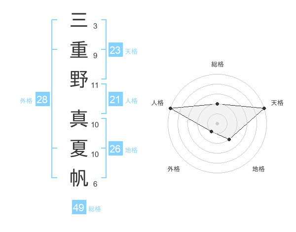 三重野 真夏帆さんを姓名の画数から五運を鑑定