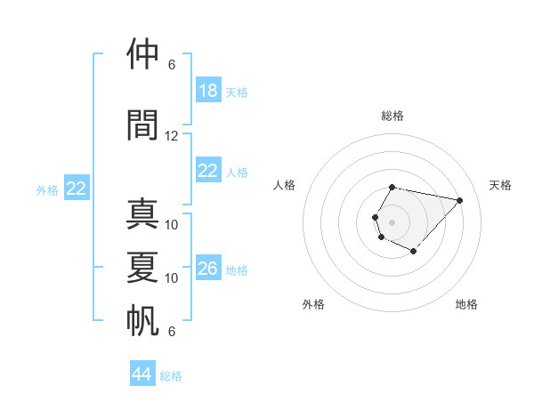仲間 真夏帆さんを姓名の画数から五運を鑑定