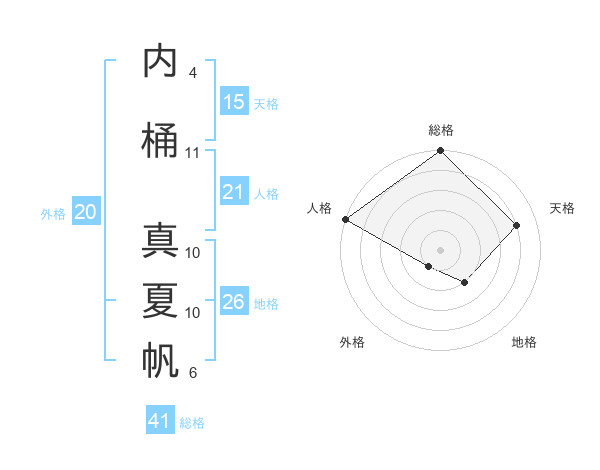 内桶 真夏帆さんを姓名の画数から五運を鑑定