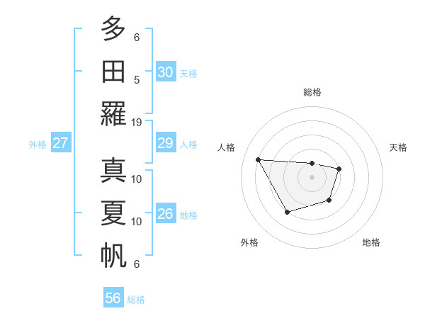 多田羅 真夏帆さんを姓名の画数から五運を鑑定