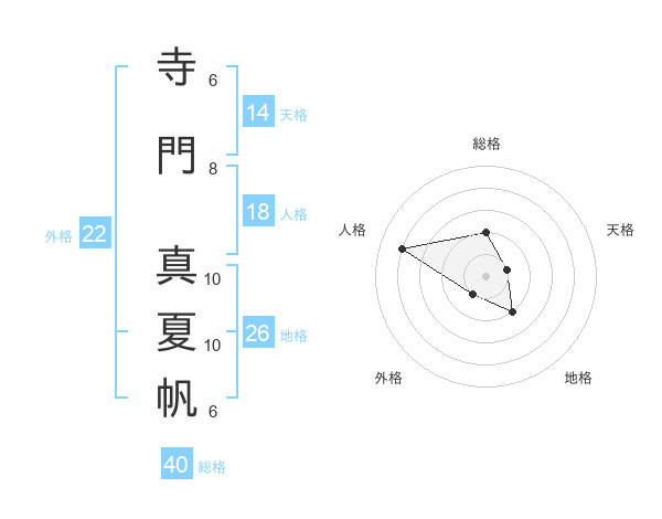 寺門 真夏帆さんの総格は40画の2点!