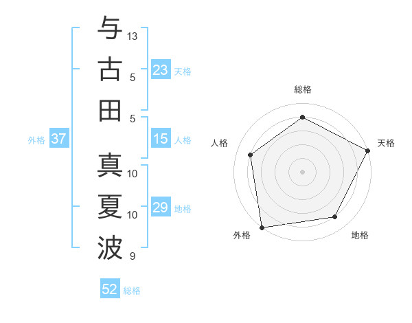 与古田 真夏波さんを姓名の画数から五運を鑑定