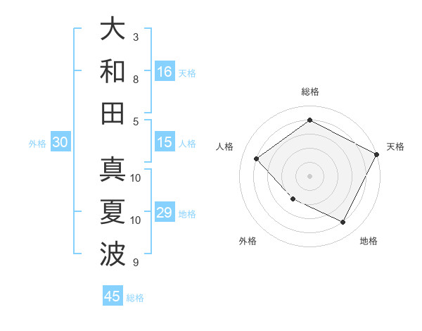 大和田 真夏波さんを姓名の画数から五運を鑑定
