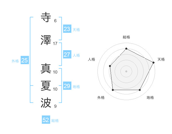 寺澤 真夏波さんの総格は52画の4点!