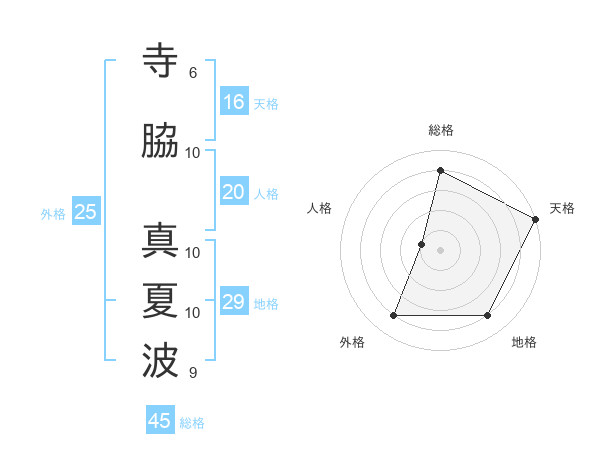寺脇 真夏波さんの天格は16画の5点!