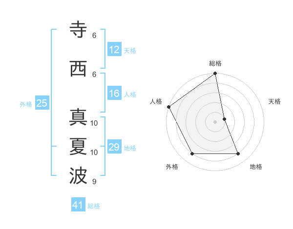 寺西 真夏波さんの総格は41画の5点!