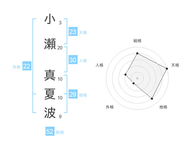 小瀬 真夏波さんを姓名の画数から五運を鑑定