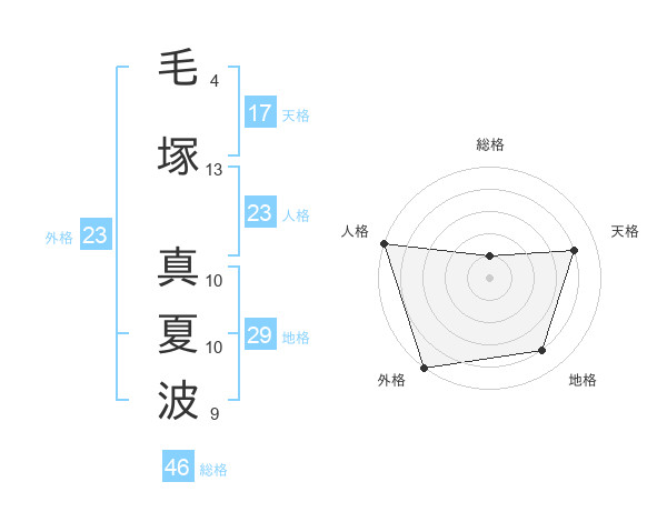 毛塚 真夏波さんを姓名の画数から五運を鑑定
