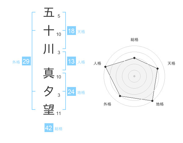 五十川 真夕望さんを姓名の画数から五運を鑑定