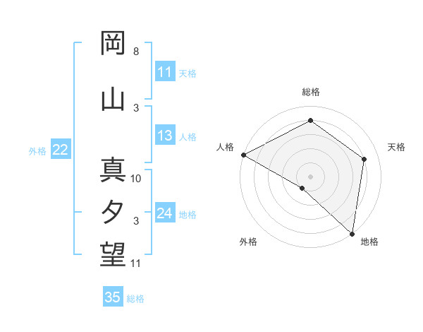 岡山 真夕望さんを姓名の画数から五運を鑑定