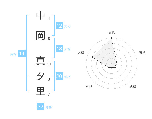 中岡 真夕里さんを姓名の画数から五運を鑑定