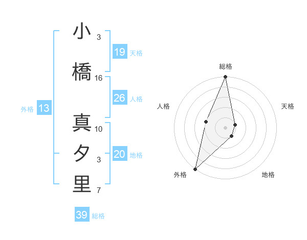 小橋 真夕里さんの外格は13画の5点!