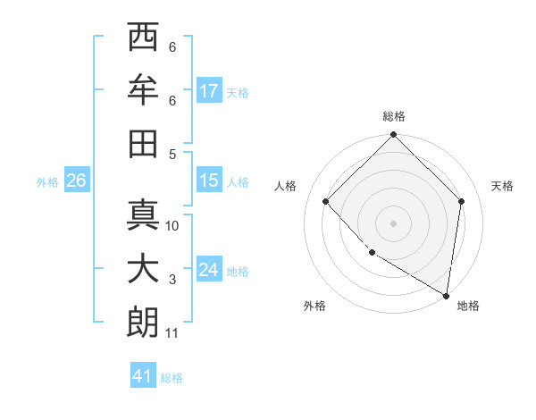 西牟田 真大朗さんを姓名の画数から五運を鑑定