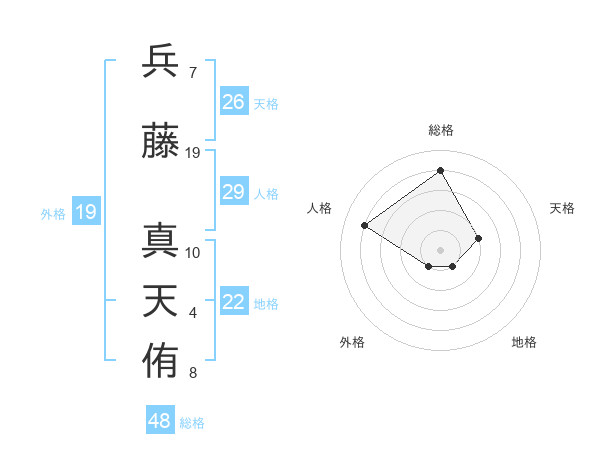 兵藤 真天侑さんの総格は48画の4点!