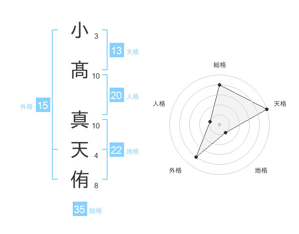 小髙 真天侑さんの総格は35画の4点!