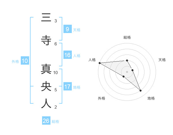 三寺 真央人さんの総格は26画の2点!