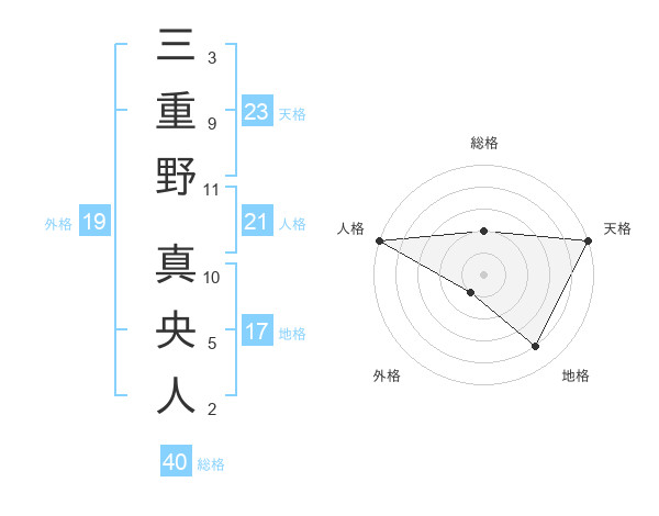 三重野 真央人さんの天格は23画の5点!