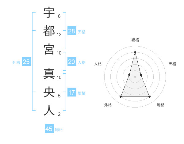 宇都宮 真央人さんを姓名の画数から五運を鑑定
