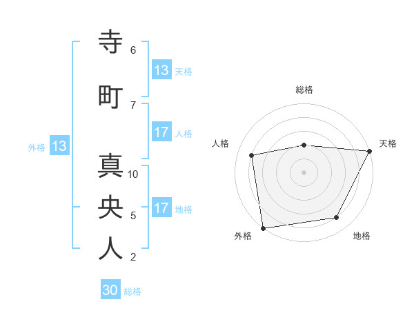 寺町 真央人さんを姓名の画数から五運を鑑定