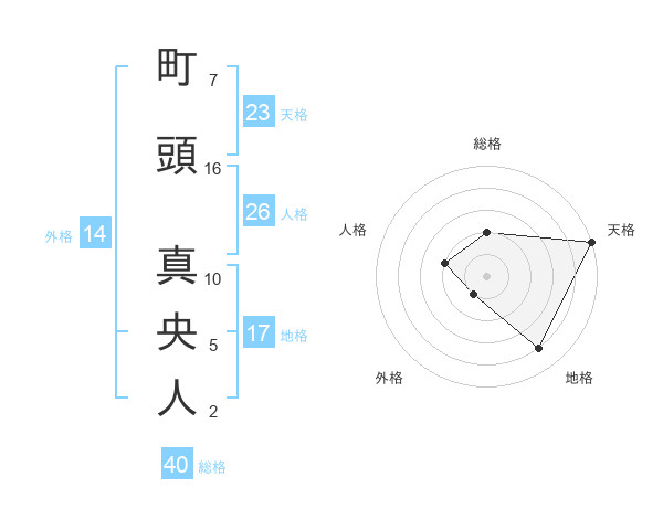 町頭 真央人さんを姓名の画数から五運を鑑定