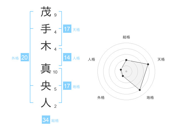 茂手木 真央人さんを姓名の画数から五運を鑑定
