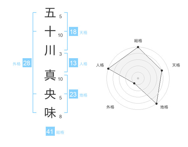 五十川 真央味さんを姓名の画数から五運を鑑定