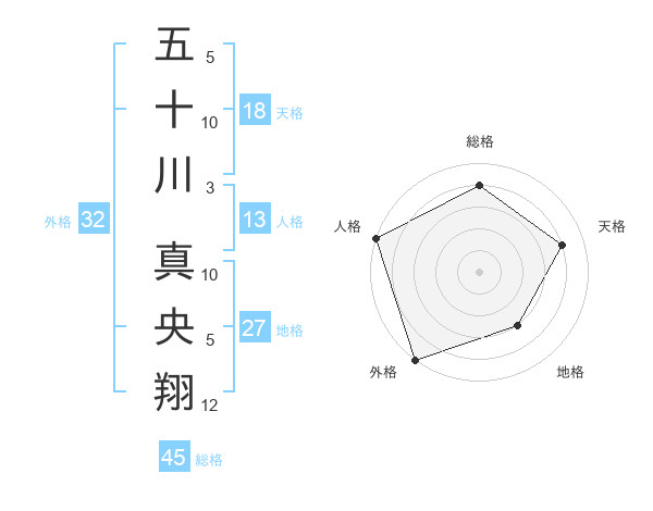 五十川 真央翔さんの天格は18画の4点!