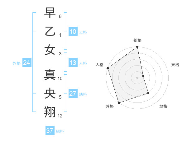 早乙女 真央翔さんを姓名の画数から五運を鑑定