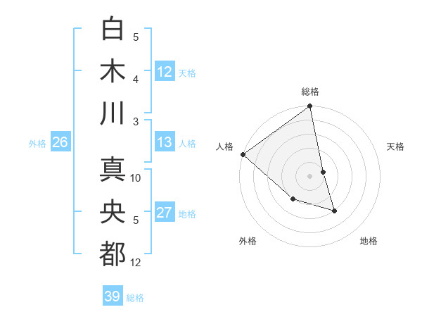 白木川 真央都さんを姓名の画数から五運を鑑定