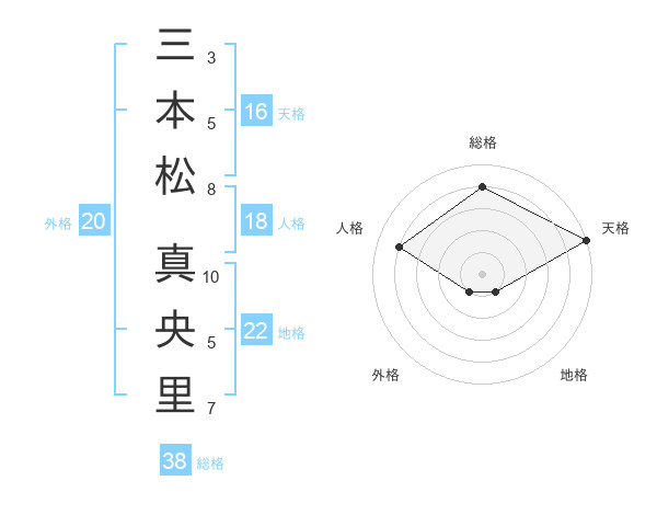 三本松 真央里さんの総格は38画の4点