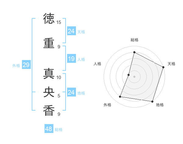 徳重 真央香さんの天格は24画の5点!