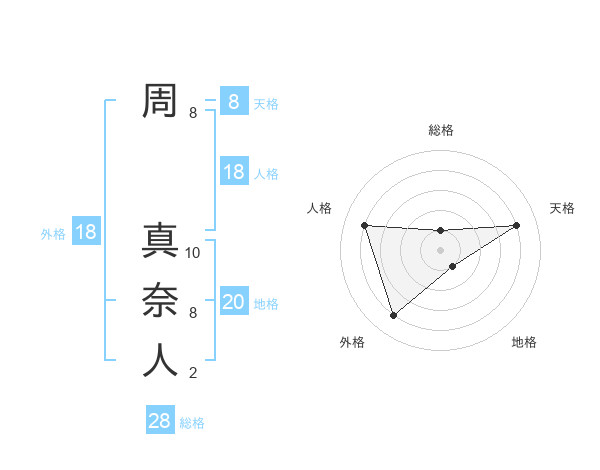 周 真奈人さんの総格は28画の1点!