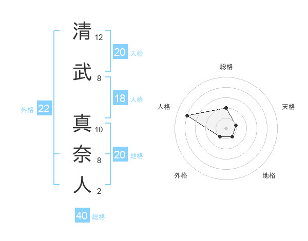 清武 真奈人さんの総格は40画の2点!