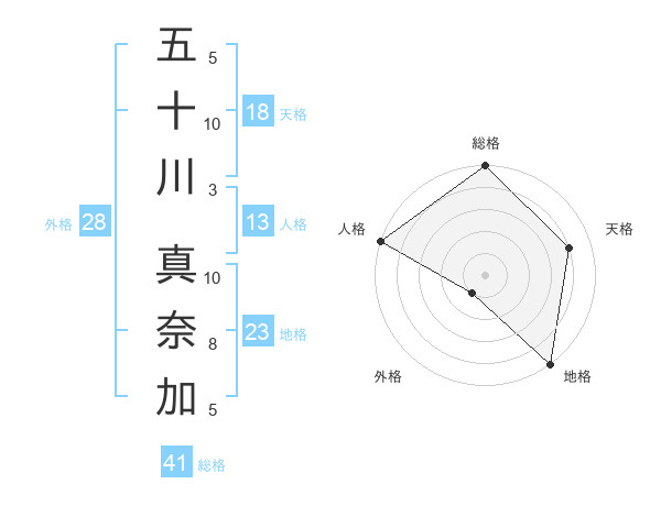 五十川 真奈加さんを姓名の画数から五運を鑑定