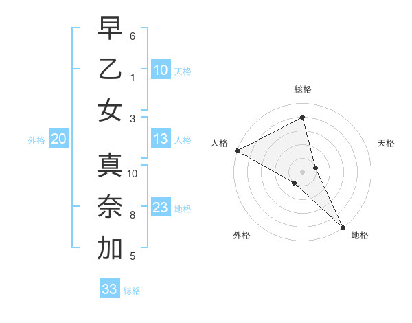 早乙女 真奈加さんの総格は33画の4点!