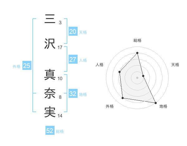 三沢 真奈実さんを姓名の画数から五運を鑑定