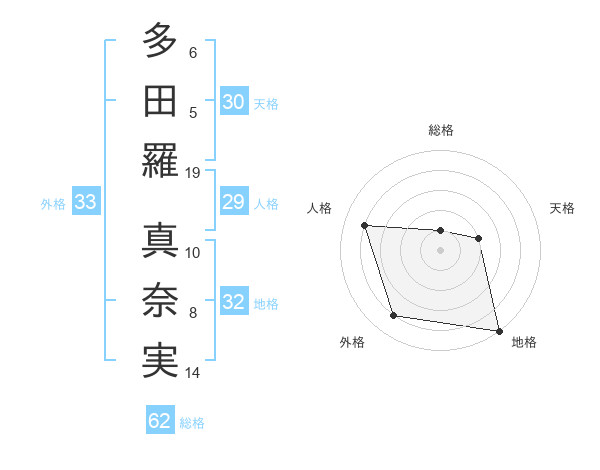 多田羅 真奈実さんを姓名の画数から五運を鑑定