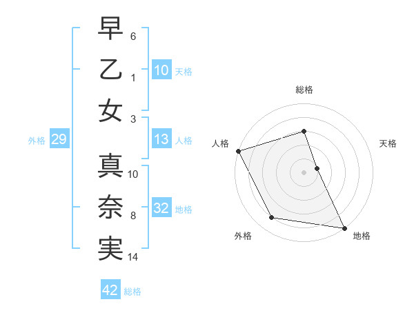 早乙女 真奈実さんの総格は42画の3点!