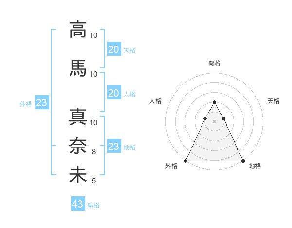 高馬 真奈未さんの総格は43画の2点!